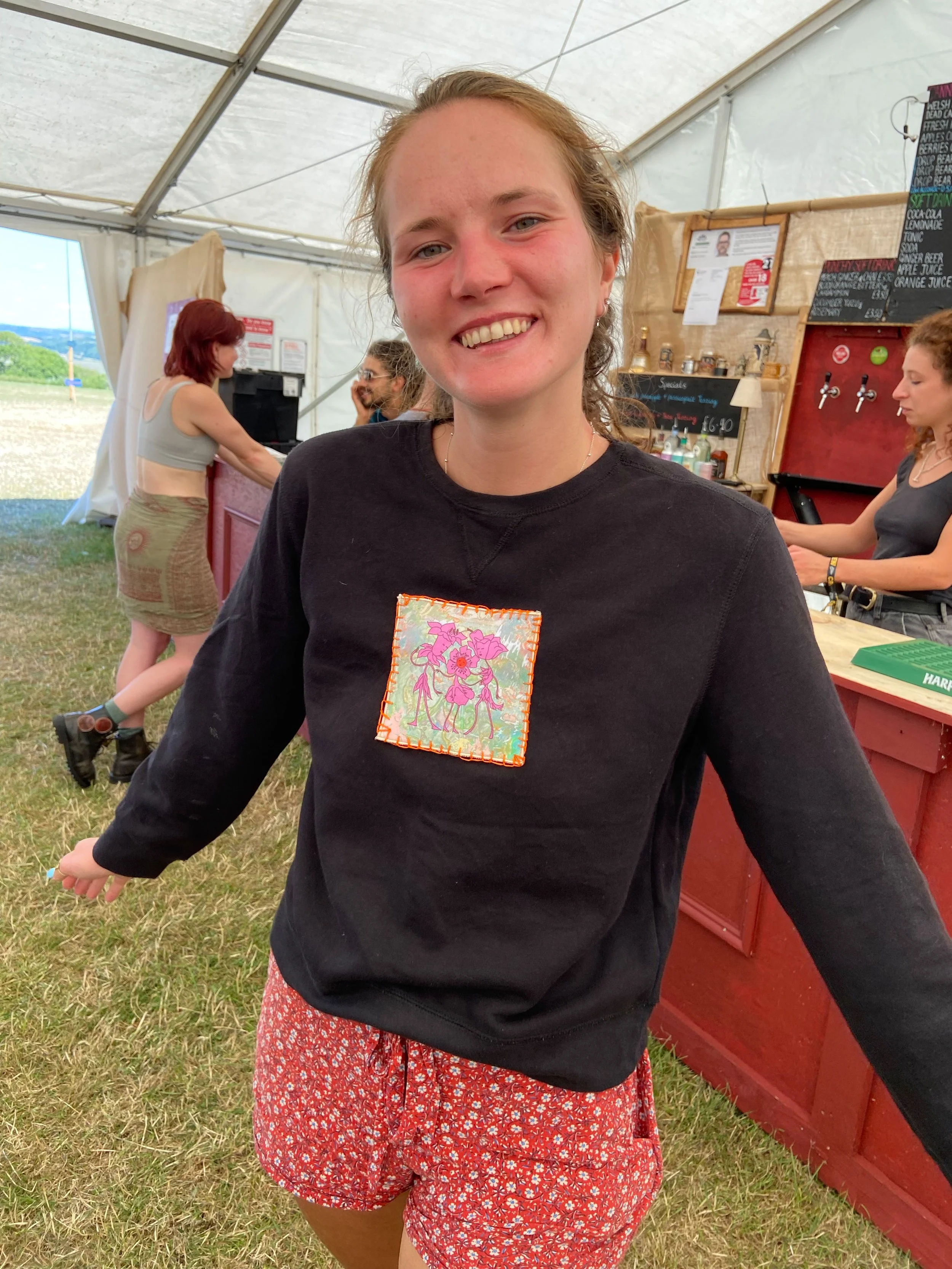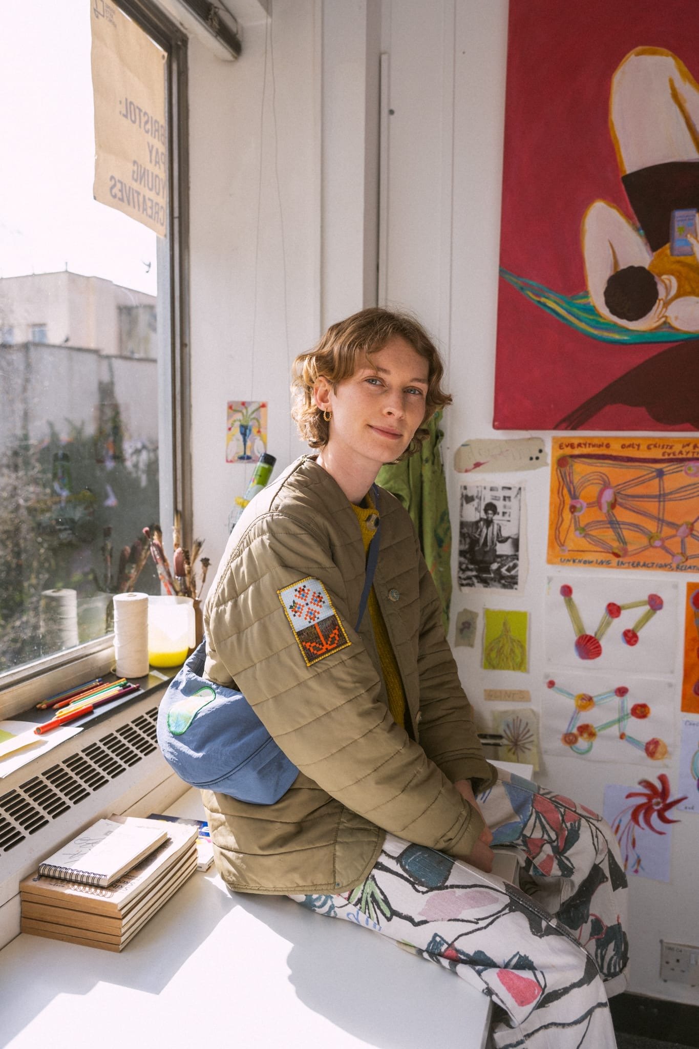 Amber Bardell is a multidisciplinary artist working predominantly with mixed media painting in Bristol, UK. Their patch collection ‘Making Home’ reflects on the power the creative practice can have in feeling at home, in times of transient living conditions and travel. Home is a feeling, one we can carry around with us, even if we haven’t found four walls to inhabit long term.
